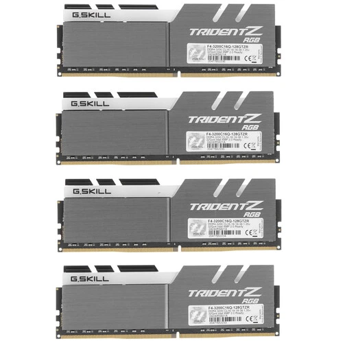 Оперативная память G.Skill Trident Z RGB 128 ГБ, DDR4 Объем памяти:4 штх32 ГБ Частота:3200 МГц Тайминги:16 - 18 - 18 - 38